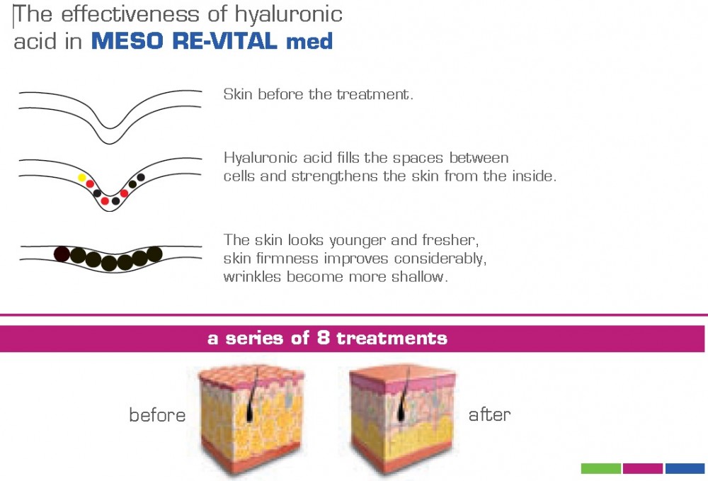 MesoVytal Med, funciona com ácido hialurónico, recomendada para as rugas leves. Efeito: Preenchimento e rejuvenescimento.