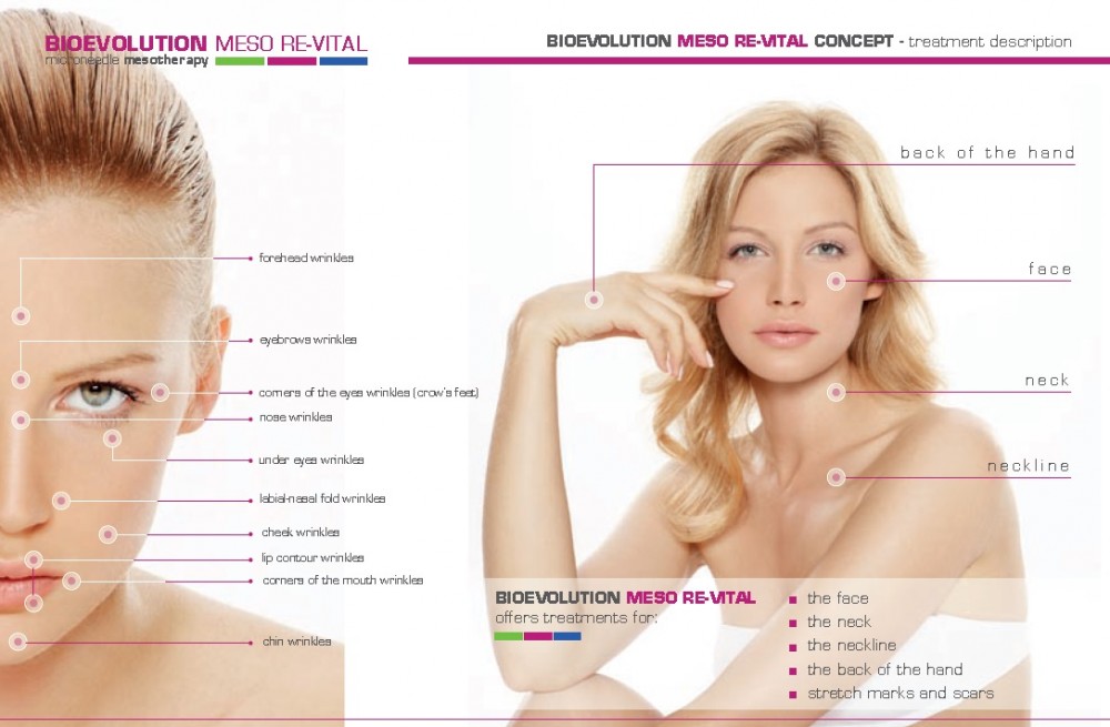 A Meso Vytal é uma técnica recente, um tratamento de rejuvenescimento, que age diretamente sobre as causas do aparecimento das rugas, flacidez, desidratação e marcas de expressão. É necessário esclarecer que um dos problemas de muitos tratamentos faciais é que as substâncias ativas são compostas por moléculas maiores que os orifícios da pele e por isso não chegam às camadas profundas da pele.